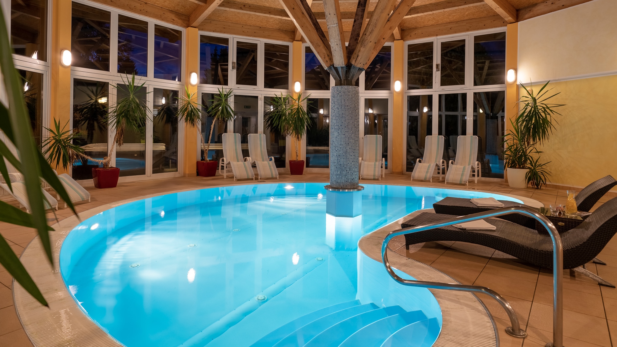 Time-out in our small but lovely indoor swimming pool does you good in summer and in winter, spring and autumn. With agreeable temperatures of 28° to 29°, the romantic glass dome and the enchanting view over our Dream Garden: Our indoor pool is the heart of well-being in our SPA area. The countercurrent facility and whirlpool corner enhance the feeling of wellbeing and relaxation on comfortable loungers is guaranteed.