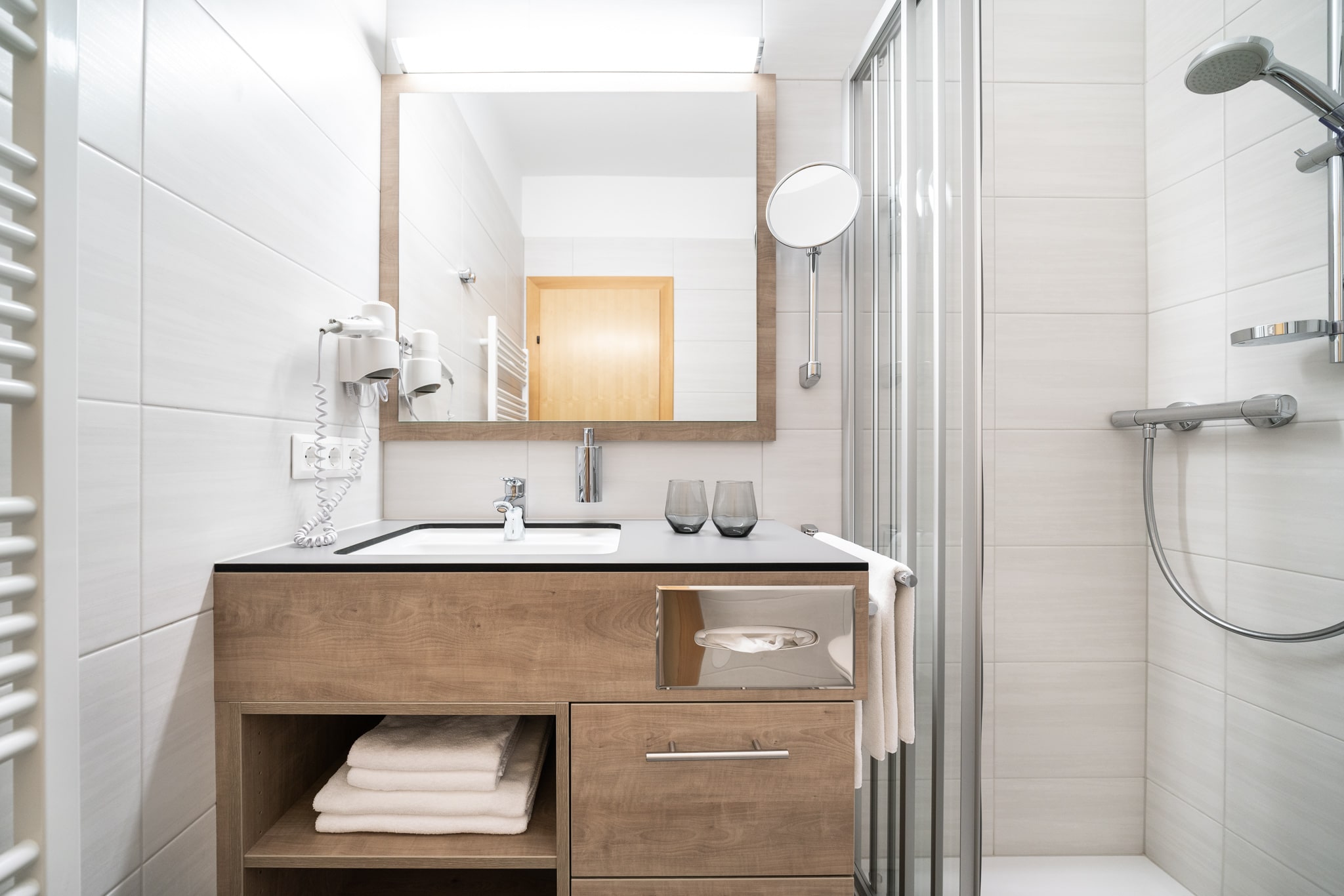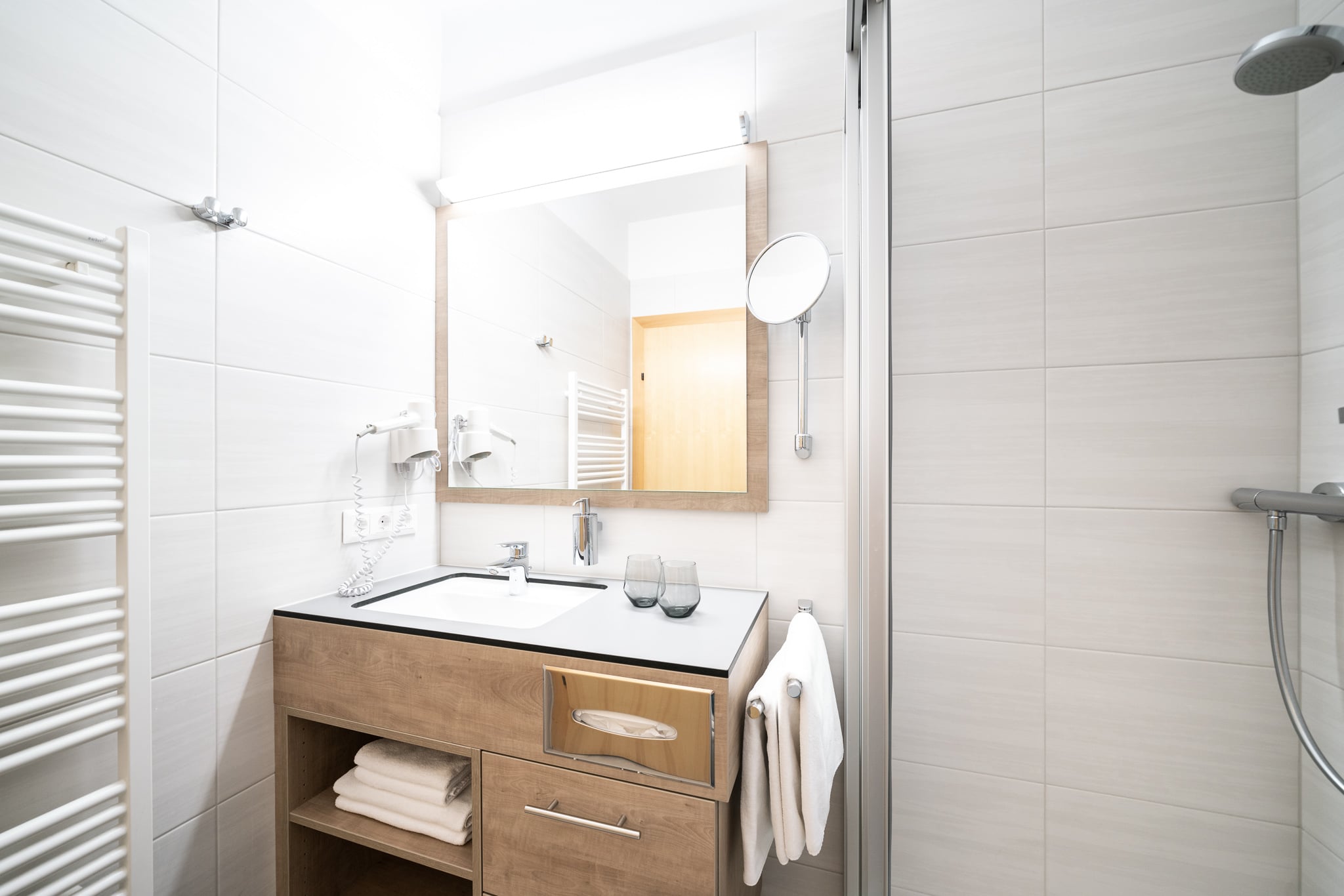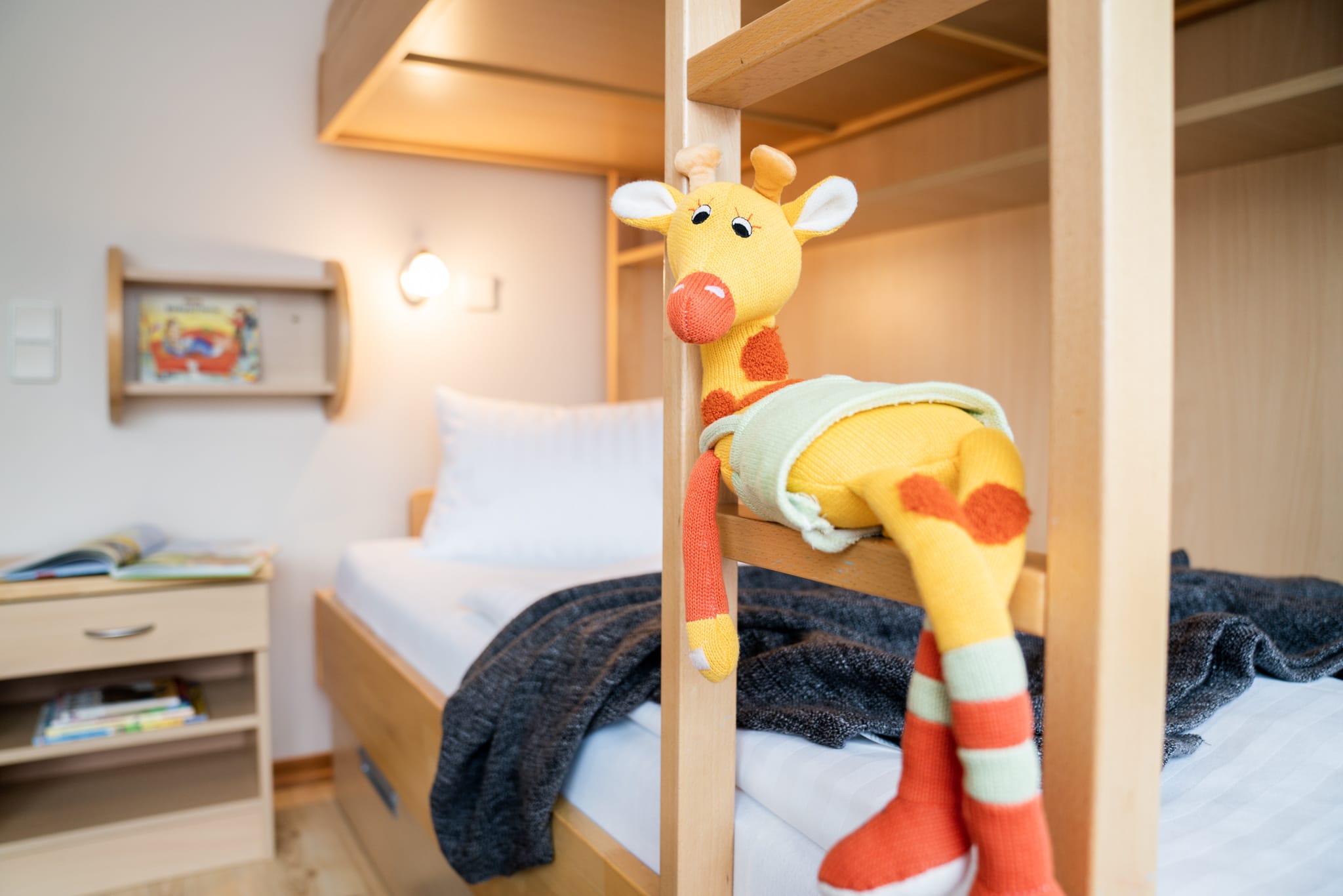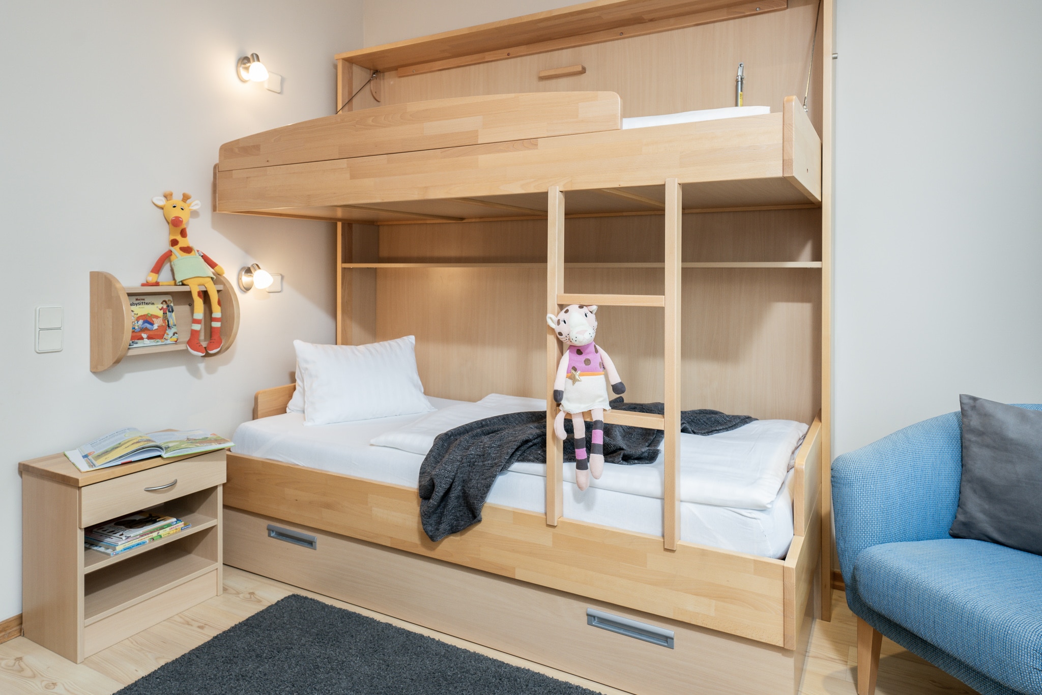 Mit bis zu 33m² ist unsere Junior Suite Superior ideal für Familien mit 3-5 Personen mit 2 getrennten Schlafzimmer mit Dusche und WC getrennt. Das helle und freundliche Design in Kombination mit Echtholzmöbeln, eine große Fensterfront, ein Balkon zugänglich vom Elternschlafzimmer sowie die ruhige Lage runden unser Angebot perfekt ab. Durch den Echtholzboden ist unser Zimmer auch für Allergiker geeignet.
